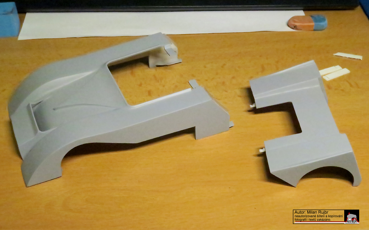kapotáž je hotová, zbývá ještě nasávací otvor vpředu.