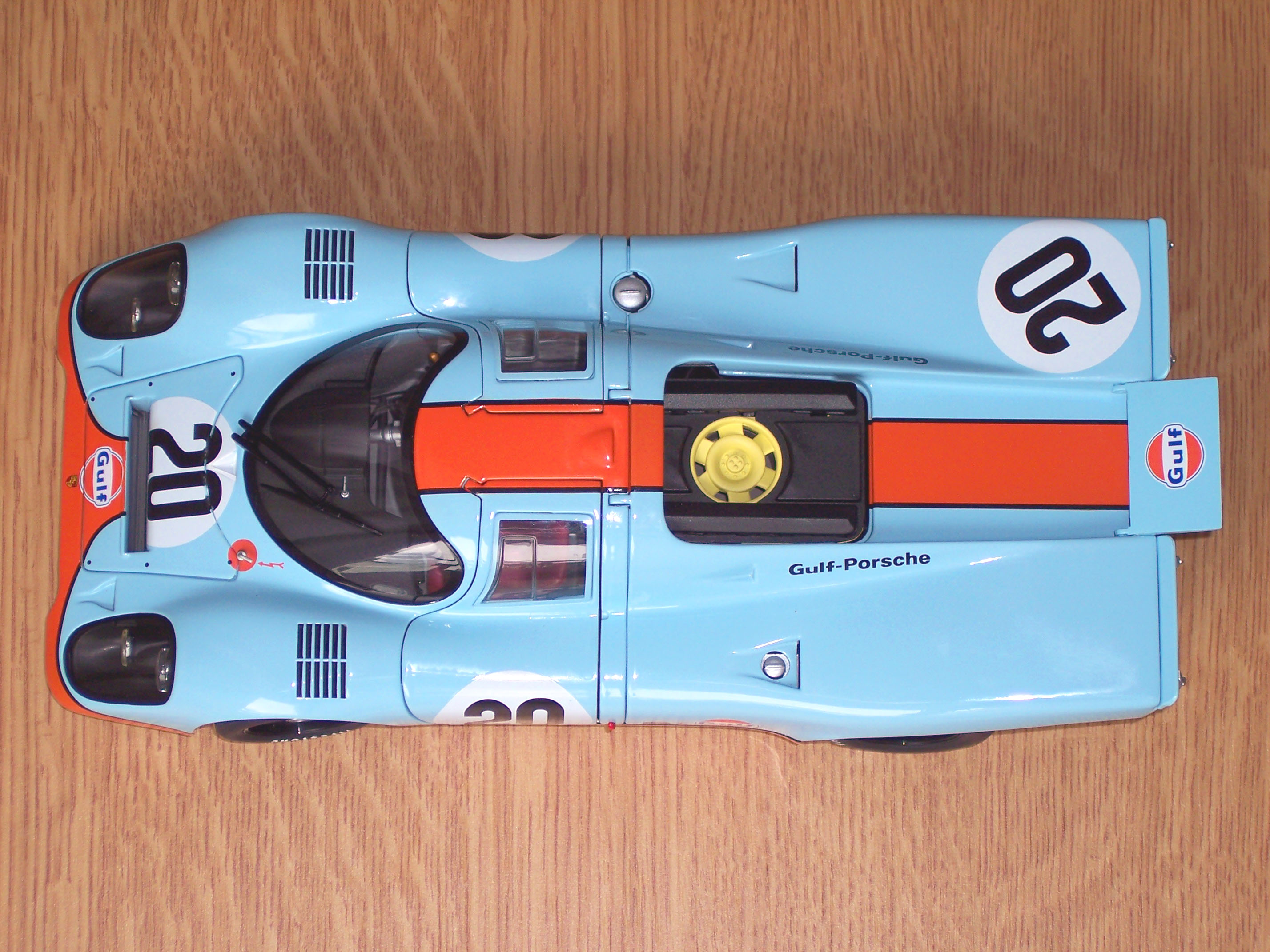 stalo i bleděmodro-oranžové zbarvení vozů podle sponzora Gulf, které
